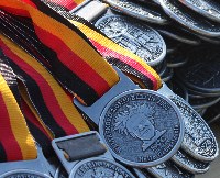 Ungewöhnlich: Die Medaille, der Lohn für alle Finisher, zum zweiten Mal in Folge mit Hailes Konterfei im Ziel. Grund ist der erneute Weltrekord im Vorjahr.