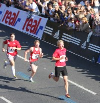 Haile setzte jedenfalls seine Fahrt fort, wurde allerdings nach 32 Kilometern, als der letzte verbliebene Tempomacher Korir ausstieg, deutlich langsamer. Für die letzten 2,195 Kilometer benötigte der Meister 7:34 Minuten, das ist nur noch ein Schnitt von 3:27 Minuten pro Kilometer (vorher ca. 2:56mni/km). Zum Vergleich bei seinen Weltrekorden 2007 und 2008 waren es noch 6:19 bzw. 6:25 Minuten. "Zu warm wäre es gewesen", meinte der erschöpfte Laufstar hinterher im Ziel. Er sei doch etwas zu schnell angegeangen und für einen Weltrekortd wären Temperaturen von über 17 Grad hinderlich, so seine Erkenntnis nach dem Rennen. Das hätte ein guter Marathontrainer ihm allerdings auch vorher schon sagen können. Erstaunlich, Haile lernt noch immer dazu. Das schnellste Finale hatte Francis Kiprop aus Kenia, der von 25 auf 30 Kilometer kaum glaubliche 14:05 Minuten stürmte. Haile sicherte seinen Sieg gegen den noch stark aufkommenden Verfolger ab und erlief mit 2:06:08 Stunden wenigstens noch die Zeitprämie in Höhe von 30.000 Euro für das Unterbieten von 2:06:30 Stunden. Sein Salär (ohne Antrittsgeld, geschätzt ca. 250.000 Euro) addierte sich somit auf 80.000 Euro. Der Zweite, der die zweite Hälfte deutlich schneller lief (auf 64:18 folgte 62:46 Minuten!), war auch mit 40.000 Euro zufrieden, verbesserte Kiprop doch seine Bestzeit auf exzellente 2:07:04 Stunden. Als Dritter kam ebenfalls mit neuem Hausrekord der Äthiopier Terfa Negari (2:07:41 Stunden) über den Zielstrich. Haile, der alte Fuchs, hatte es den Kenianern in Berlin zwar noch einmal gezeigt, war aber meines Erachtens nicht in der erhofften Form. Seine Vorbereitungswettkämpfe im Sommer deuteten bereits darauf hin. Im Januar verpasste Gebrselassie bereits wegen einsetzender Regenschauer den Weltrekord in Dubai und siegte dennoch überlegen in 2:05:29 Stunden. Duncan Kibet verbleibt als Trost für seinen schwachen Auftritt aber noch die Weltjahresbestzeit für 2009, die sein Landsmann und Olympiasieger Samuel Wanjiru aber schon in drei Wochen in Chicago unterbieten könnte.