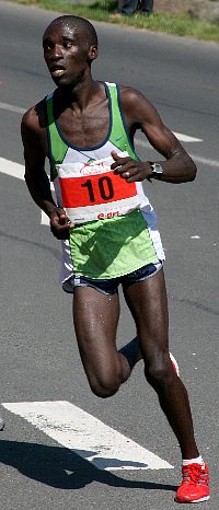 (Foto, Copyright: Herbert Steffny)Wie im letzten Jahr wurde es auch bei der zweiten Auflage des Kassel Marathons zu warm. Zum frühen Startzeitpunkt 8.30 Uhr waren es bereits 18 Grad. Gegen Mittag als die Freizeitläufer über Halbmarathon und Marathon dem Ziel entgegen liefen, strahlte die Sonne in voller Stärke und die Quecksilbersäule näherte sich der 30 Grad Marke. Das Organisationskomitee um den früheren Marathon Bundestrainer Winfried Aufenanger mußte allerdings einen Rückgang der Marathon Finisher zugunsten der Halbmarathonläufer hinnehmen, vielleicht die Konsequenz aus Hitzelauf vom Vorjahr. Man möchte Kassel treu bleiben, aber eben nur halblang machen. Der Hessische Rundfunk übertrug im Dritten Programm erstmals die Veranstaltung in einer Zweistunden Sendung. Bei den Männern war im Vorfeld von 2:10 Stunden die Rede, aber nachdem angesichts der Wärme niemand die Vorgabe des Tempomachers annahm, wich man früh von dieser Marschroute auf einen 2:15er Kurs ab. Eine zehnköpfige Spitzengruppe schmolz nach 25 Kilometern auf ein kenianisches Duo zusammen. Der Vorjahressieger Francis Kiprop spielte zu keinem Zeitpunkt eine Rolle. Der Debütant Pharis Kimani und sein erfahrenerer Landsmann Mariko Kipchumba, mit 2:11:18 Stunden Sieger von Utrecht 2007 verschärften gemeinsam das Tempo auf eine 2:13er Zeit. Seite an Seite lief der neun Jahre jüngere bisherige Halbmarathon Spezialist (1:01:55 Stunden) mit dem größeren Kipchumba einträchtig zusammen. Man teilte sich fair die Schwämme und Wasserbecher. Bei 39 Kilometern setzte sich Kimani schließlich ohne Gegenwehr ab und verbesserte mit 2:15:36 Stunden den alten Streckenrekord um über eine Minute. Er würde nun fleißig weiter trainieren und nächstes Jahr wiederkommen, versprach der glückliche Sieger.